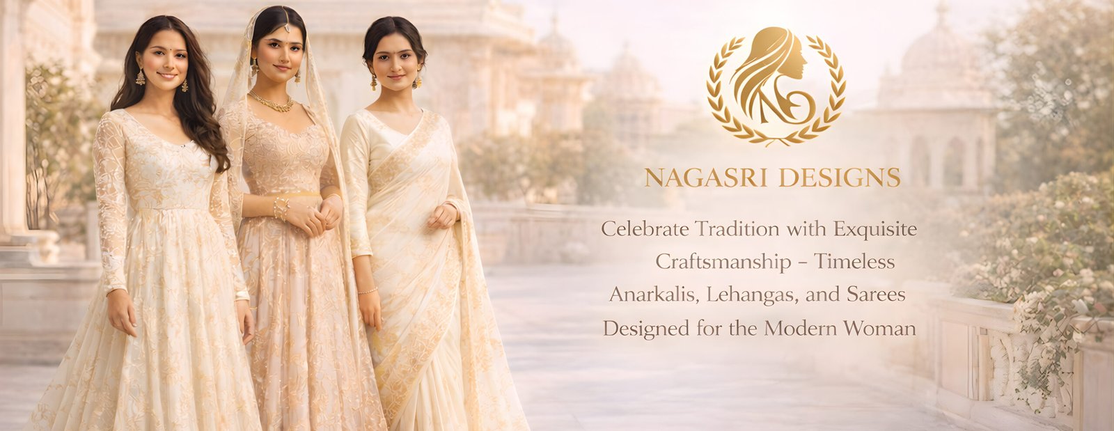Nagasri Designs brings together timeless Indian craftsmanship and modern style through curated collections of Anarkalis, Lehengas, and Sarees.