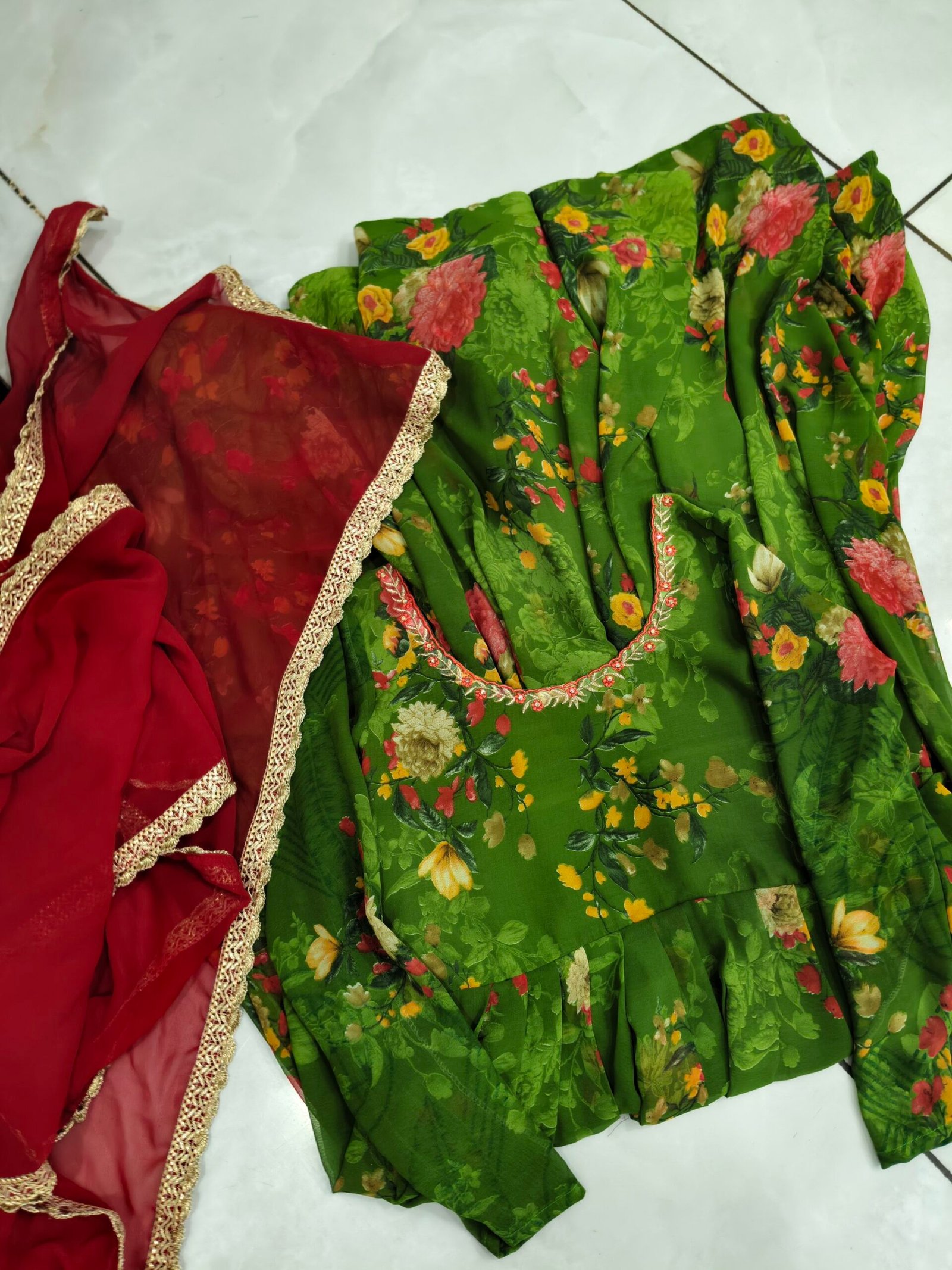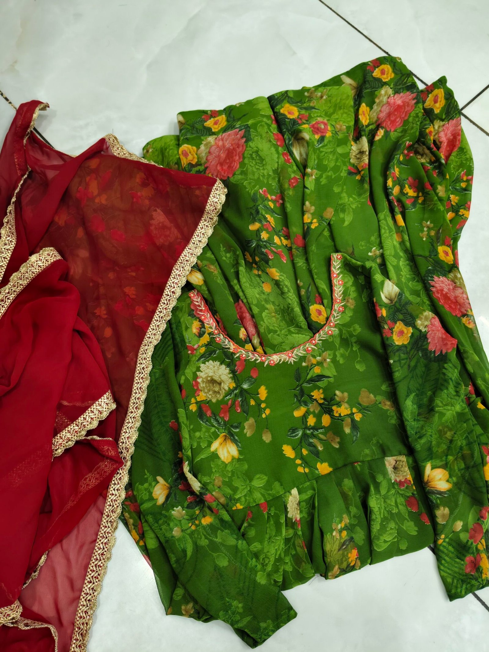 green and red dress